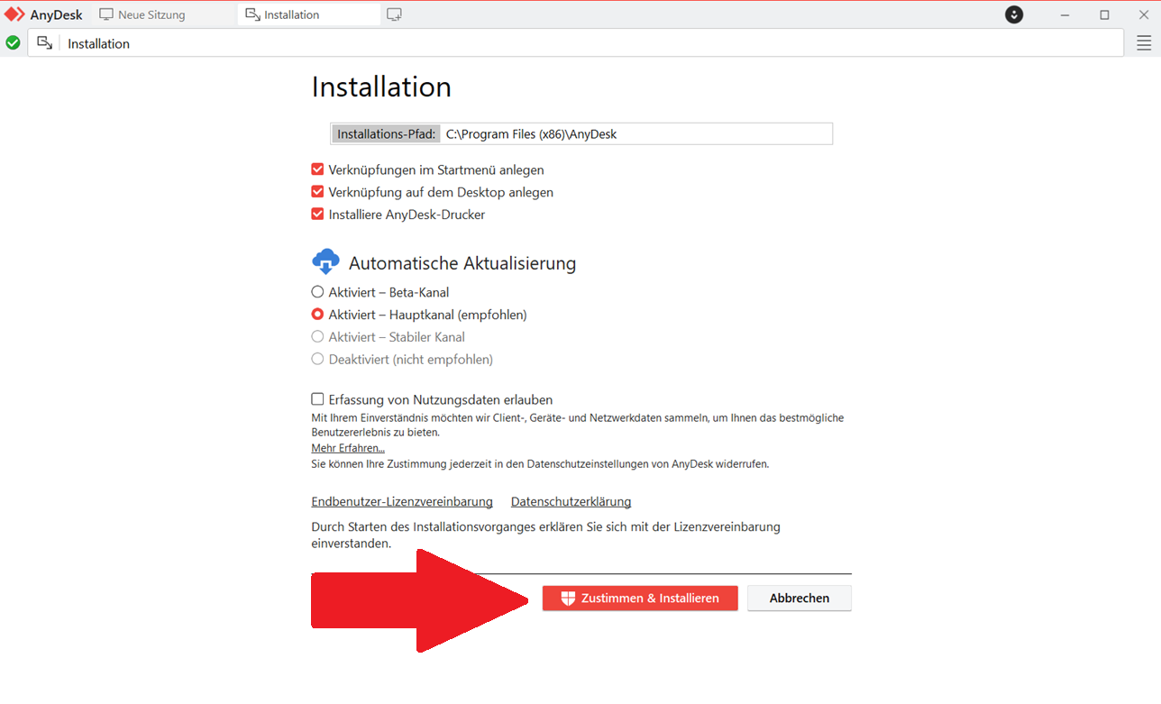 1) Prüfen, ob AnyDesk bereits installiert ist.