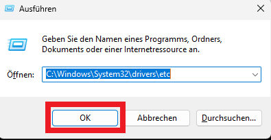 In dem Dialog unten links geben Sie dann bitte C:\Windows\System32\drivers\etc ein.